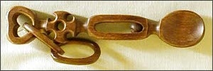 It's a Welsh Lovespoon, traditionally carved by a young man and presented to the girl he wishes to be his bride. Note the chain links and the ball in a cage, yet the whole thing is carved from a single block of wood!